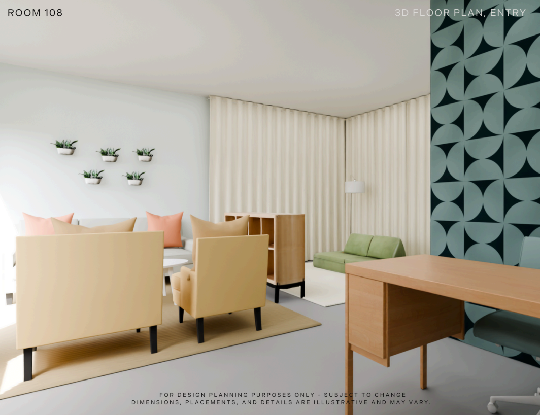 Space Planning • Lighting Refresh • Mural + Interactive Wall • Biophilic Elements • Family-Friendly Furnishings